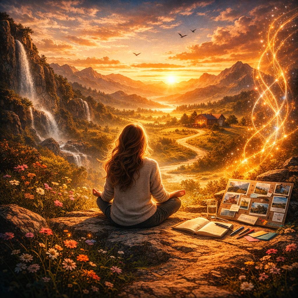 Commence par méditer, imagine comment tu veux réellement vivre, écoute ce qui vit dans ton cœur, ressens les émotions que cela éveille. Écris tes rêves avant que la réalité actuelle ne les réduise au silence. Crée un vision board et colle-y des photos ou des dessins de ce qui vit dans ton cœur. Laisse la vie couler à travers toi et avance pas à pas. Rome ne s’est pas construite en un jour.
